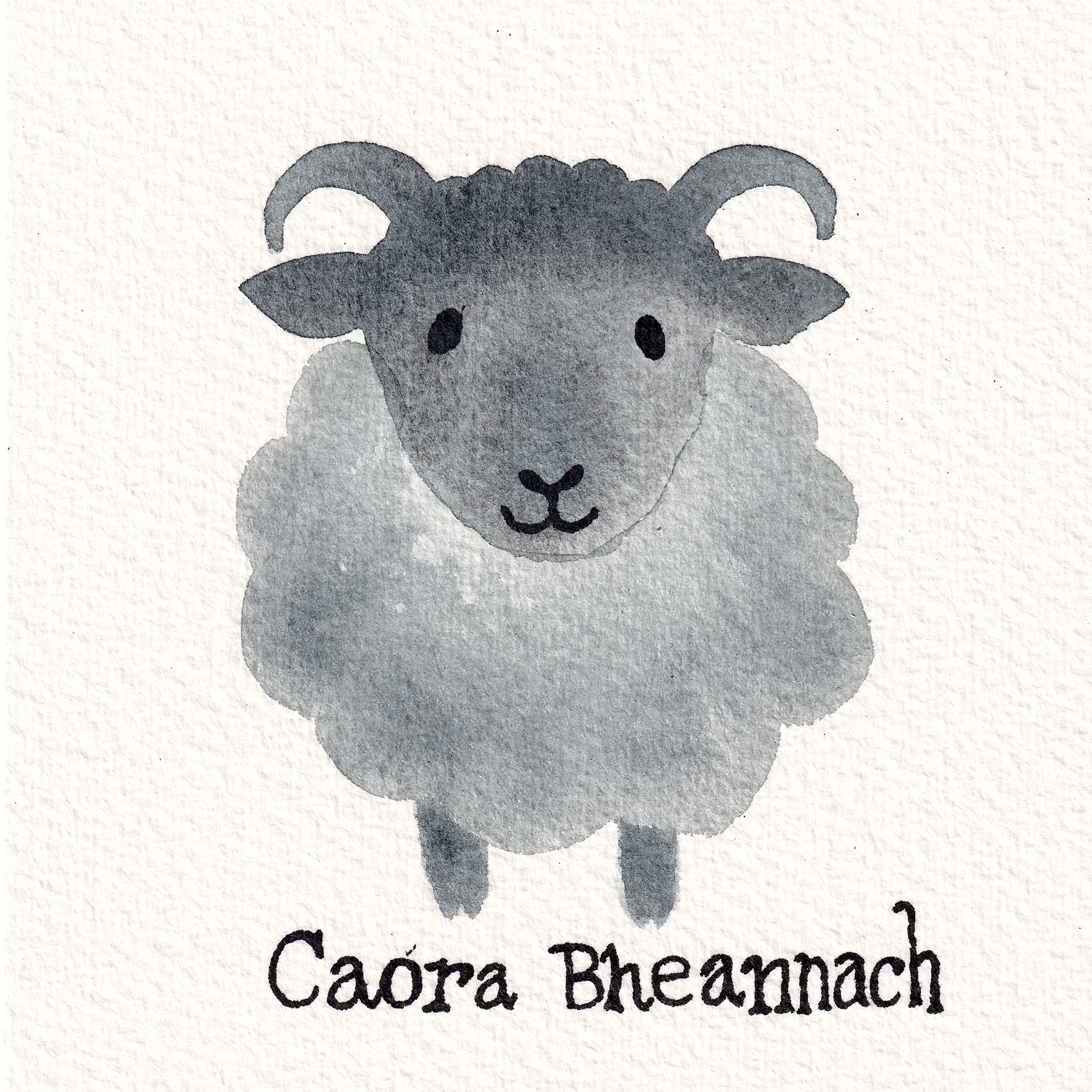 “Caora Bheannach” is Gaelic for Hebridean Sheep and this cheerful character is part of my Hebridean Hugs series — a collection of whimsical watercolour illustrations inspired by the wildlife and spirit of the Hebrides.